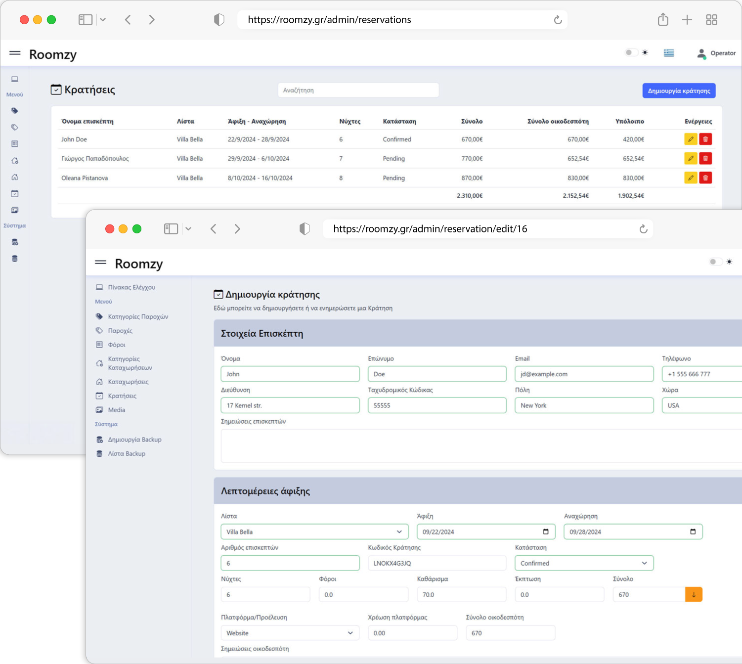 Το Roomzy σας δίνει τη δυνατότητα να διαχειριστείτε τις κρατήσεις σας, να επικοινωνείτε με τους ενοικιαστές σας και να προσφέρετε την καλύτερη εμπειρία διαμονής.